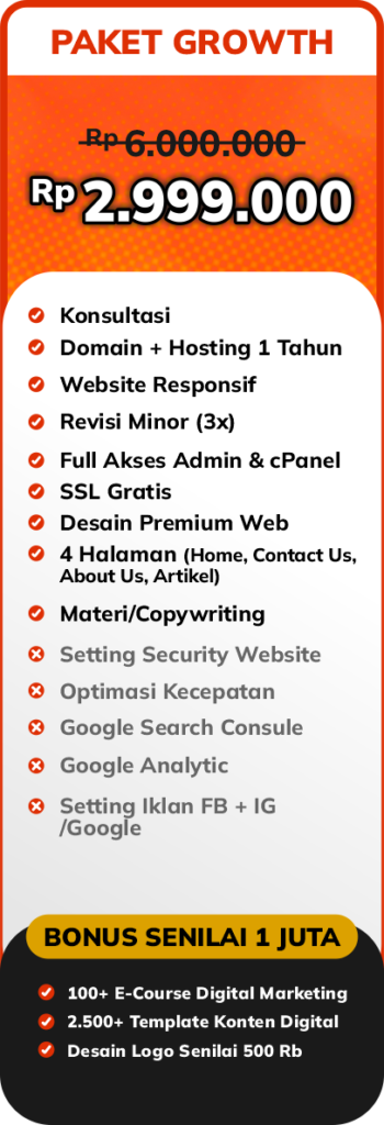 Website bukan hanya tampilan online, tetapi juga representasi resmi bisnis Anda di dunia digital. Dengan website yang modern dan fungsional, usaha Anda akan lebih mudah ditemukan, dipercaya, serta dipilih oleh calon pelanggan.